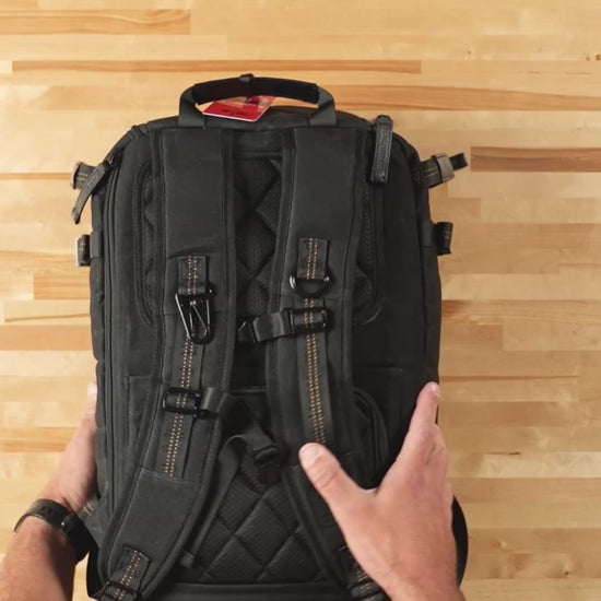 Our Waxed Canvas Backpack — built to adapt to whatever the day (or trip) throws at you. Crafted from our heavy duty durable waxed canvas, this bag combines heritage toughness with modern modularity. The interior features a full clamshell design and a customizable felt lining that works with our interchangeable inserts, allowing you to build your own layout — from tech setups to travel and everyday carry. Finished with thoughtful details like the hidden passport pocket, top and side grab handles, back laptop compartment, front tablet compartment and a roller-luggage pass-through, this is the backpack built for everywhere you’re going next.