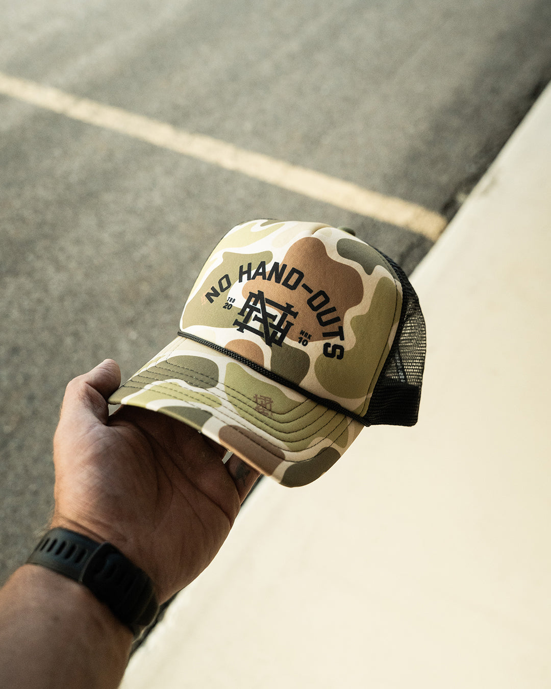NO HAND OUTS FOAM TRUCKER - CAMO