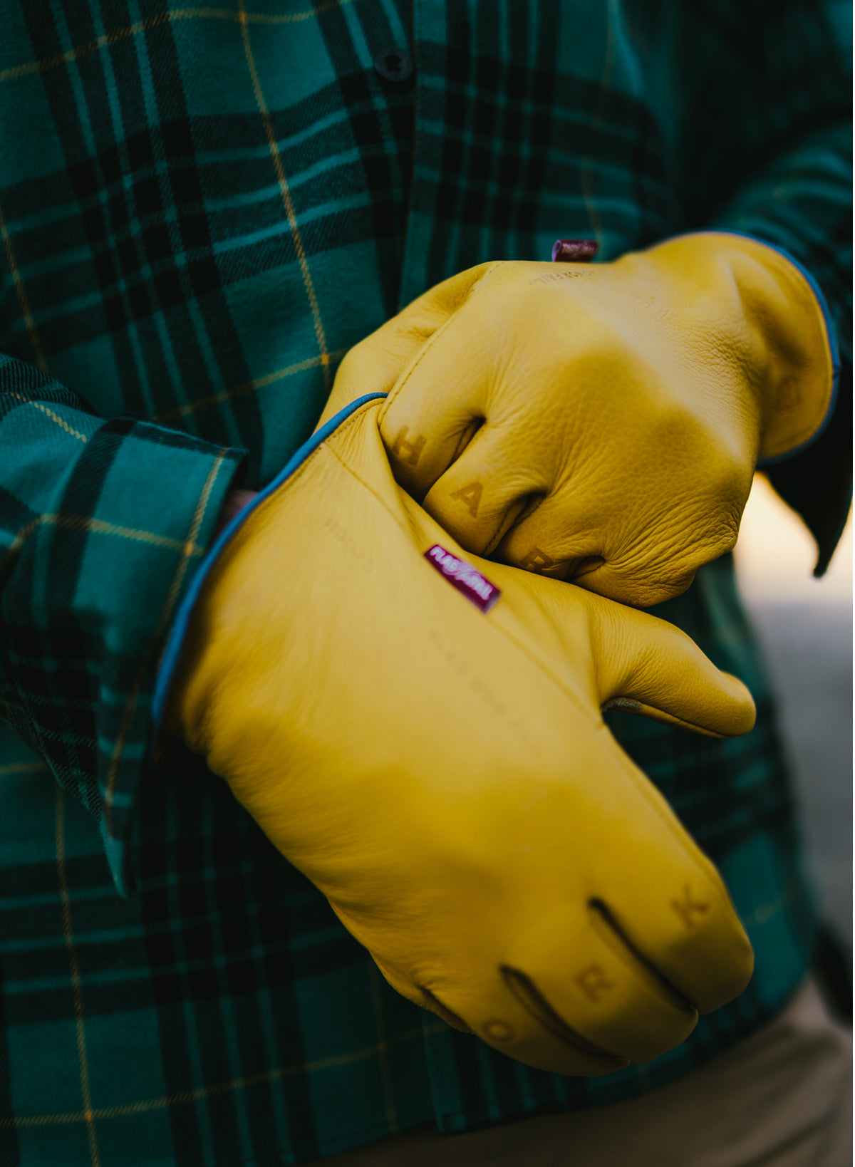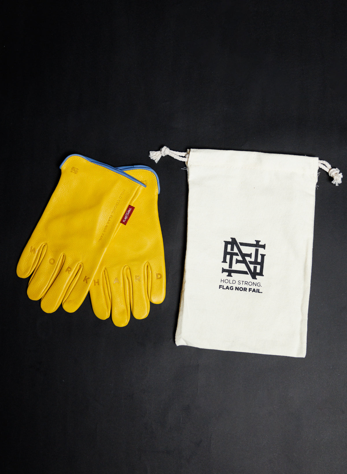 • Debossed "Work" "Hard" on right and left knuckles