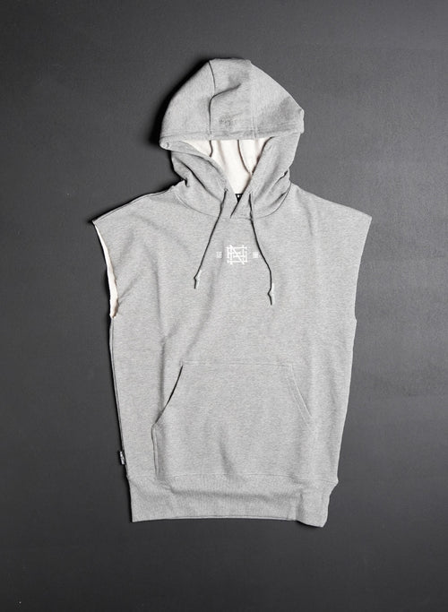 EMB SLEEVELESS HOODIE - GREY EMB SLEEVELESS HOODIE - GREY EMB SLEEVELESS HOODIE - GREY