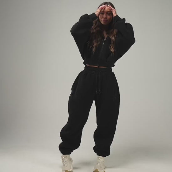 The Women’s Oversized Fleece Collection features oversized cuffs, hem, and waistband for added comfort and a bold, modern silhouette. Tapered meets cozy.